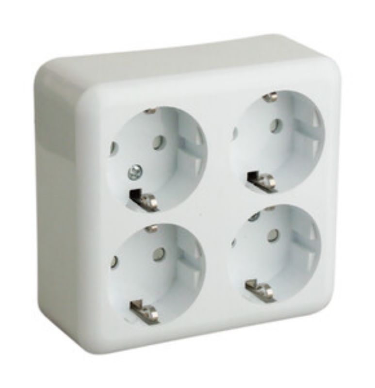 Base Schuko de 4 Tomas Superficie 16A 250V – 3680W – Color Blanco – Serie 36.470 – Montaje en Superficie