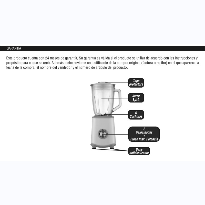 Capacidad de la jarra 1,5 L (cristal)